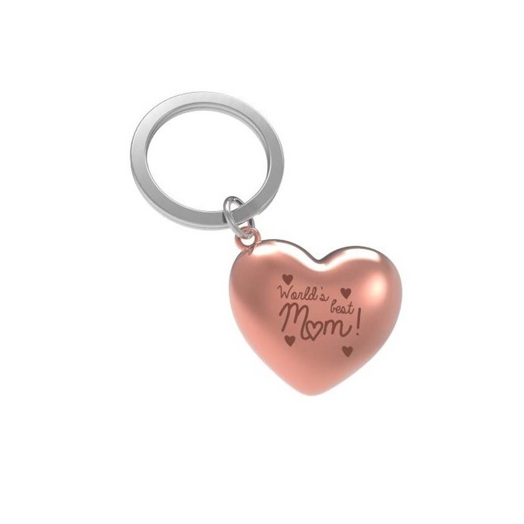 Designová klíčenka ve tvaru srdce s nápisem "World's best mom". Skvělý tip na dárek pro tu nejlepší mámu.