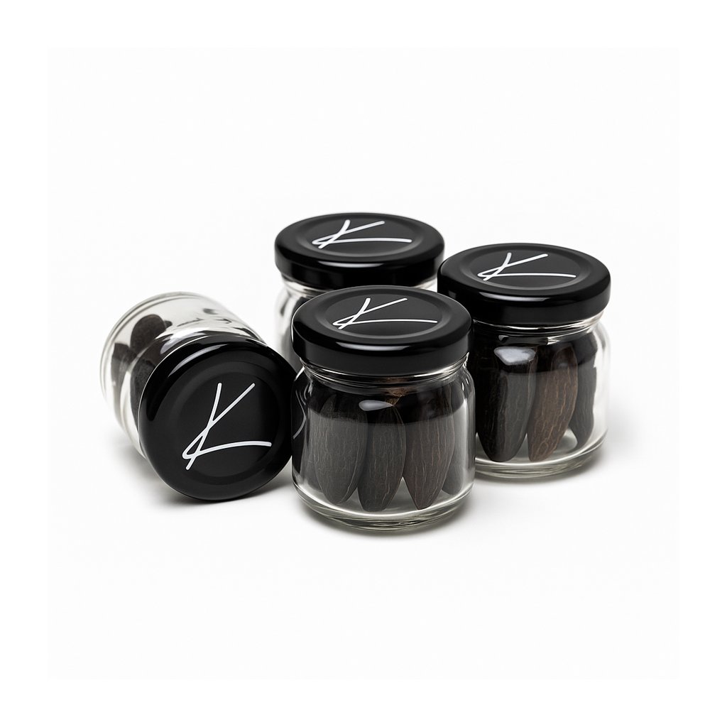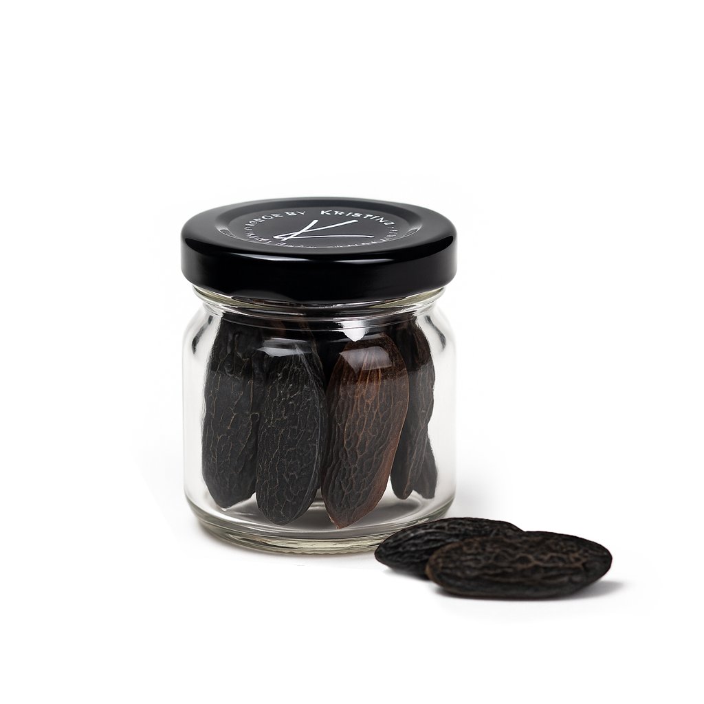 Tonka boby jsou baleny do malé uzavíratelné skleničky (Ø4,5 cm, výška 5 cm), na které je uveden datum spotřeby a odkaz na moje stránky www.madebykristina.cz, kde najdete hromadu receptů, ve kterých lze tonka fazoli použít.