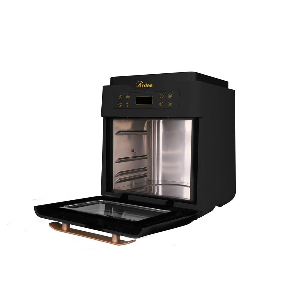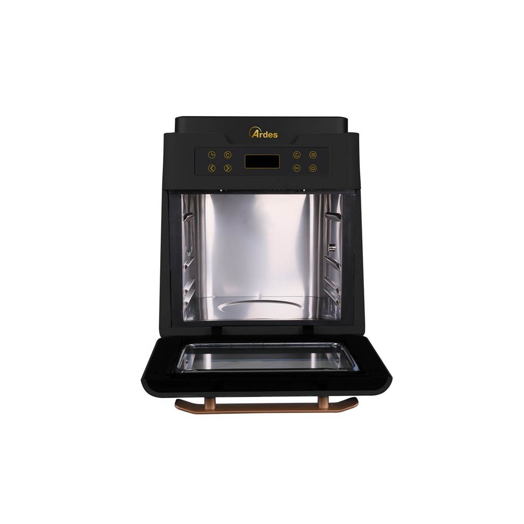 Multifunkční horkovzdušná fritéza 5 v 1 s příkonem 1700 W a s objemem 12 l od značky Ardes 1K3000 nabízí LCD displej, 7 přednastavených programů a časovač až na 90 minut. Bohaté příslušenství součástí balení.