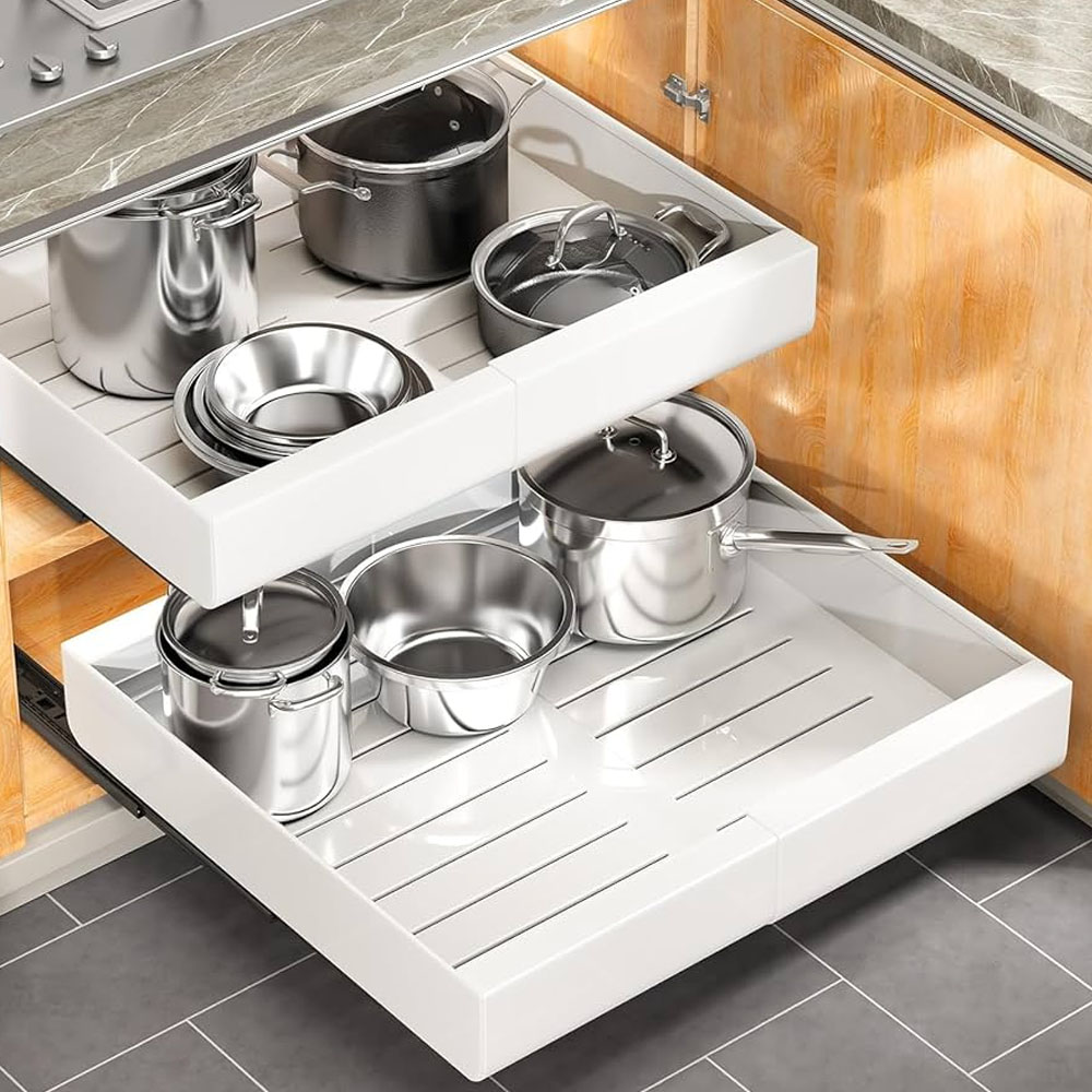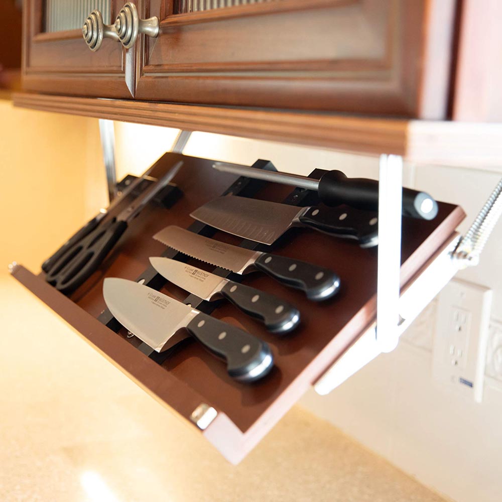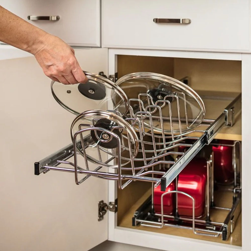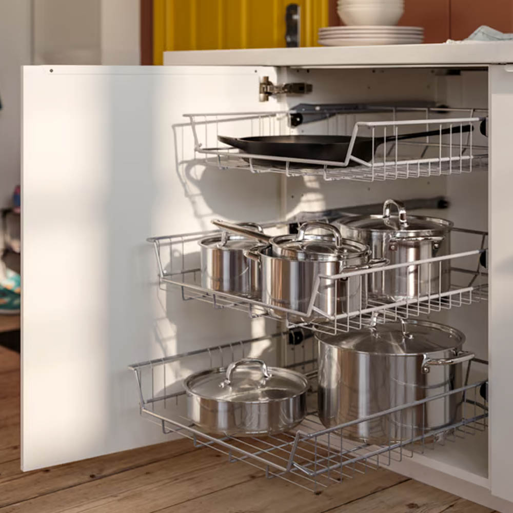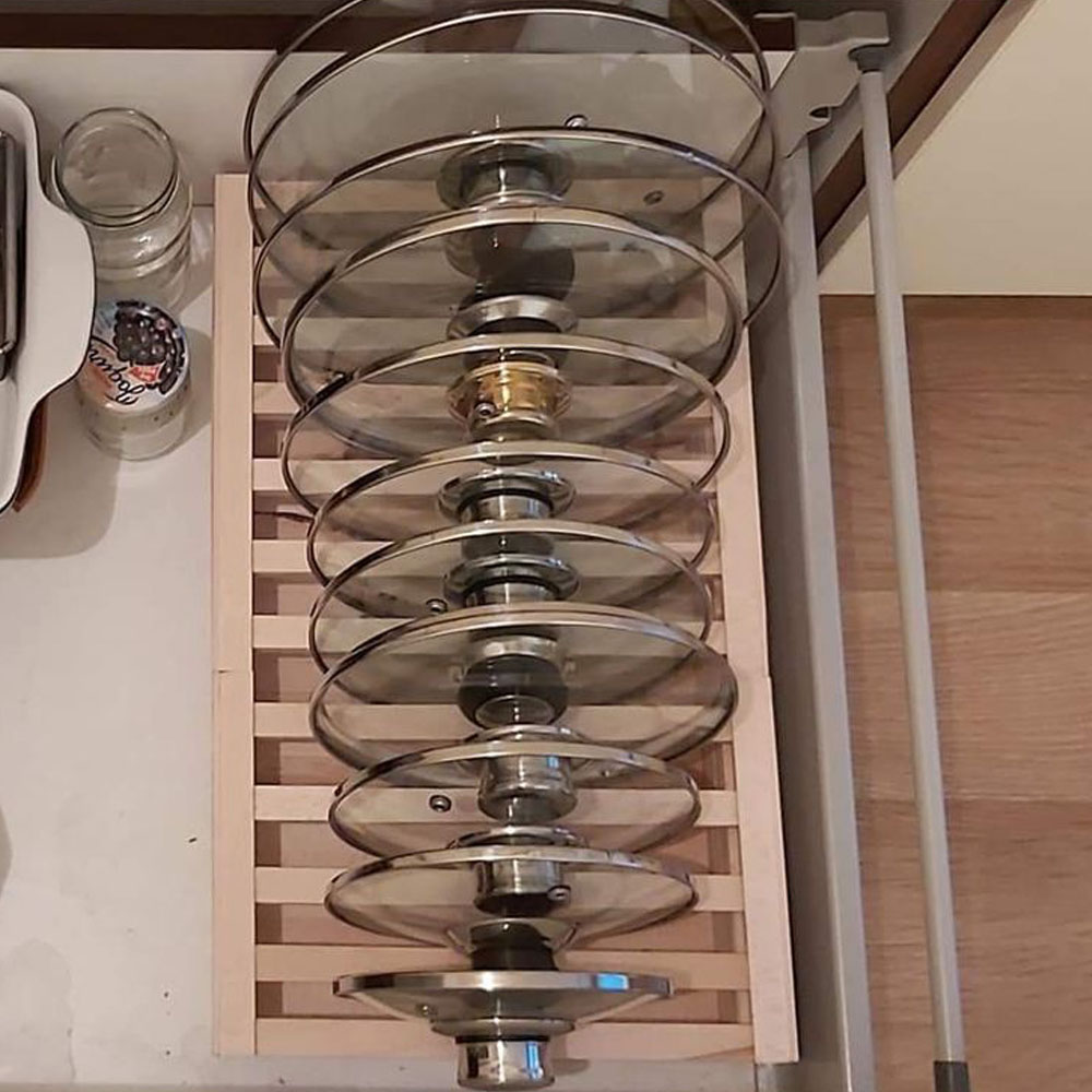 Jde o jednoduché řešení, jak maximálně využít každý centimetr úložného prostoru a udržet v kuchyni řád. Důležité je pouze myslet na dostatečný prostor při zavírání, aby uložené věci nenarážely do obsahu skříňky.