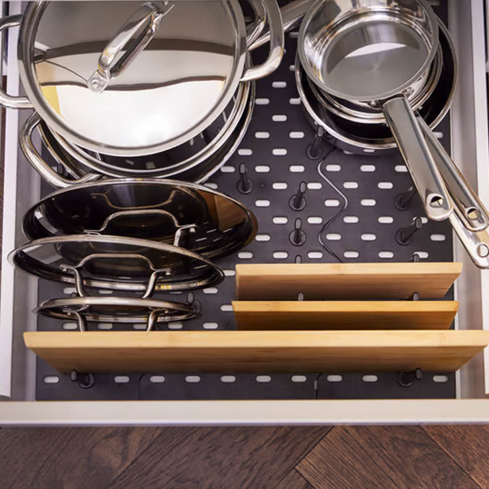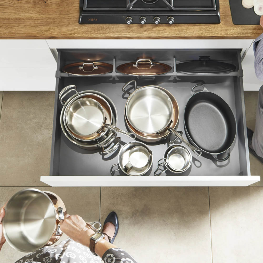 - rozdělovníky zásuvek, které pomohou vytvořit pevné sektory – ideální řešení pro plastové boxy a víka, která mají tendenci se v zásuvce posouvat,
