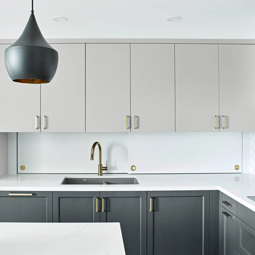 Trendem posledních let je naopak kuchyň bez horních skříněk, která prostor vizuálně odlehčí a provzdušní. V takovém případě je ale o to důležitější důkladně naplánovat úložný prostor ve spodních skříňkách, aby zůstala zachována plná funkčnost celé kuchyně.