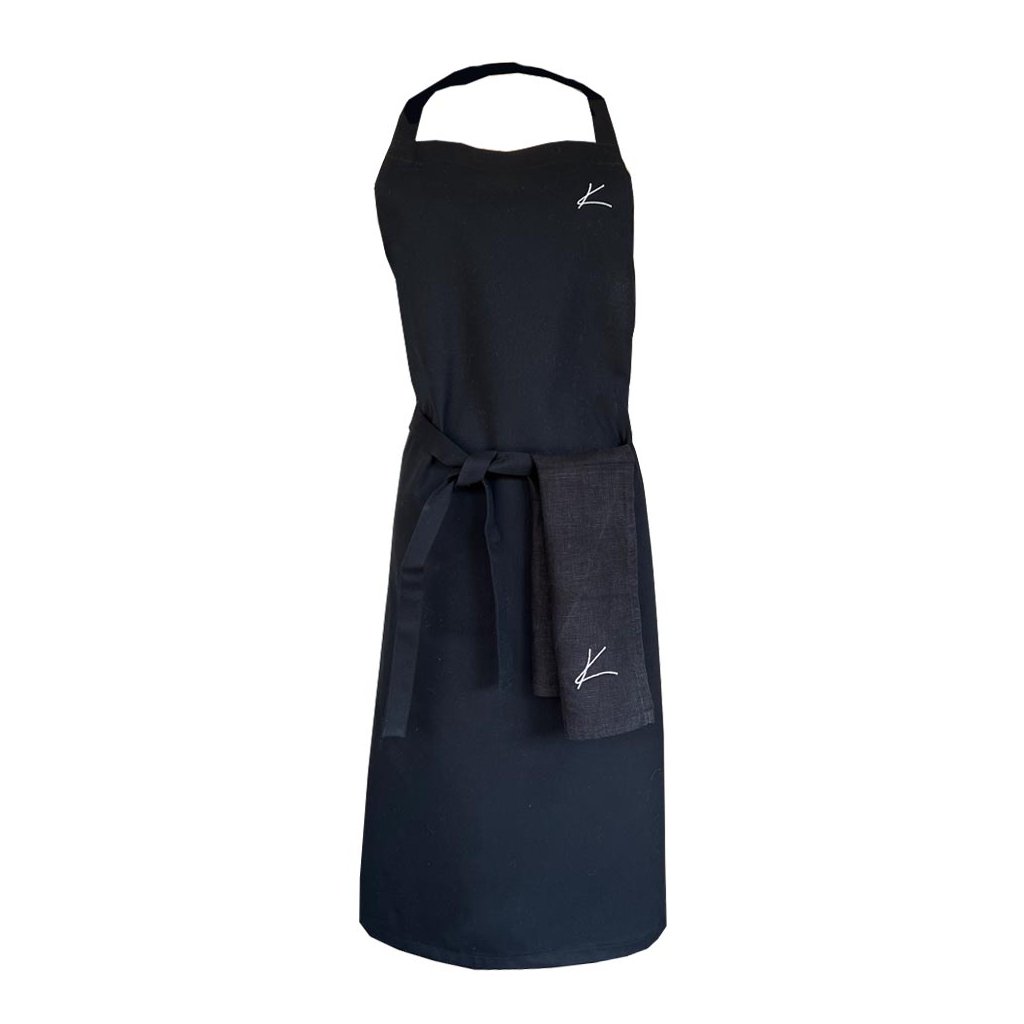 Praktická jednoduchá kuchyňská zástěra s vyšitým logem K se hodí ke každému vaření a ochrání vaše oblečení od případného ušpinění. Jak jste u mě zvyklí, je v černém provedení a nechýbí na ní moje nové logo K. Je ušita z lokálně vyrobeného bavlněného materiálu a ušita v chráněné dílně na Moravě.