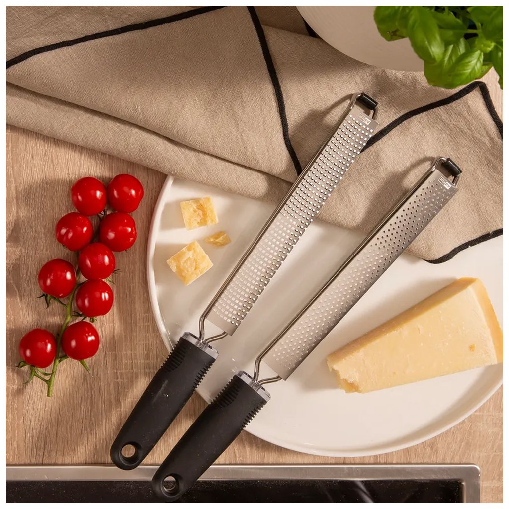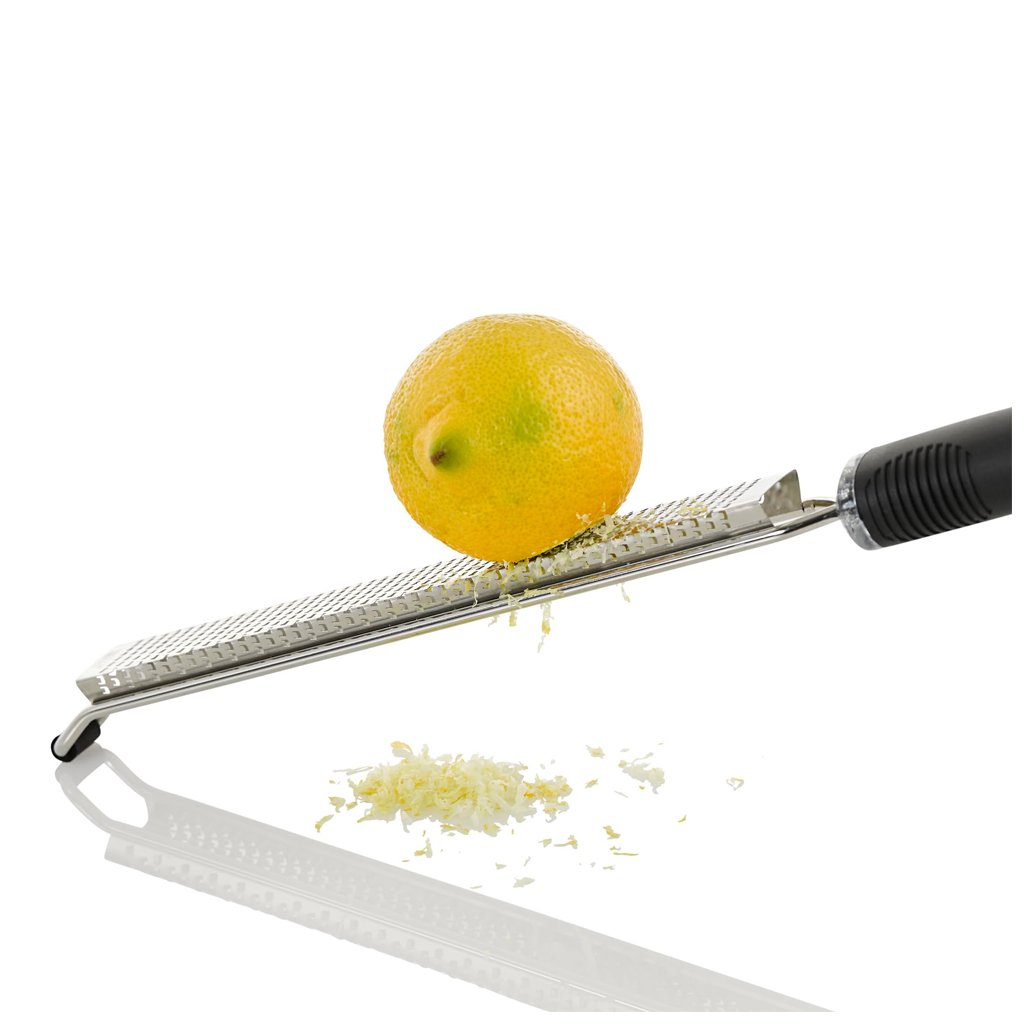 Speciální zoubky PreciseGrate®, kterých je na ostří celkem 494, zajišťují mimořádně snadné a výkonné strouhání, přičemž spodní část je opatřena pogumovaným prstencem bránícím klouzání během strouhání. Struhadlo tak lze opřít třeba o talíř nebo krájecí prkénko a nastrouhat tvrdý sýr, citrusovou kůru, muškátový oříšek, tonka fazoli nebo čokoládu.