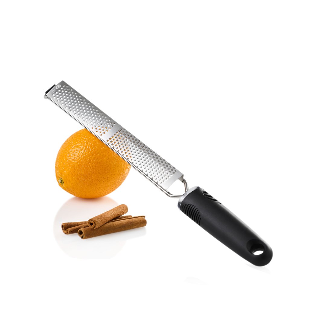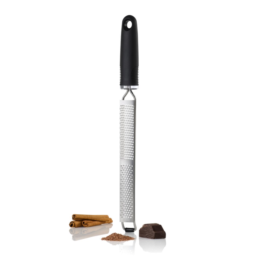 Speciální zoubky PreciseGrate® zajišťují mimořádně snadné a výkonné strouhání, přičemž spodní část je opatřena pogumovaným prstencem bránícím klouzání během strouhání. Struhadlo tak lze opřít třeba o talíř nebo krájecí prkénko a nastrouhat tvrdý sýr, citrusovou kůru, muškátový oříšek, tonka fazoli nebo čokoládu.