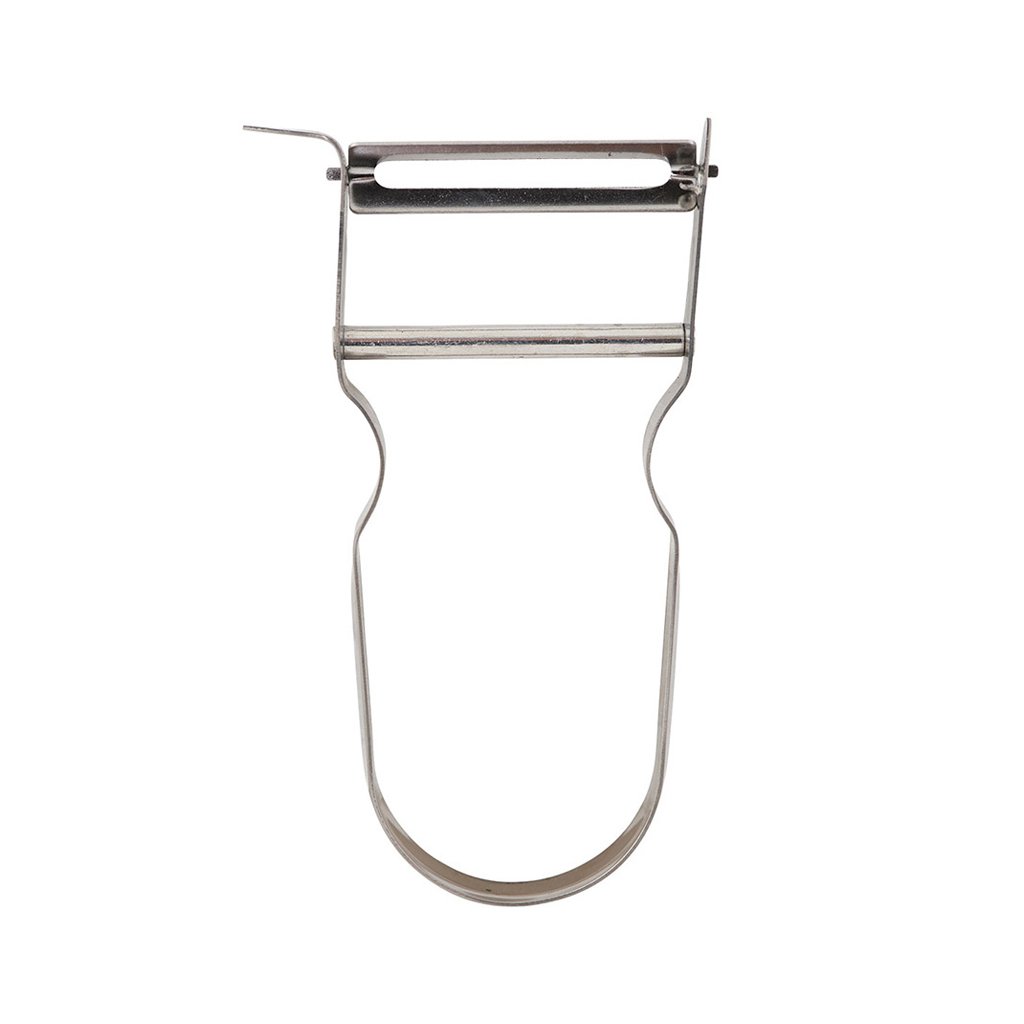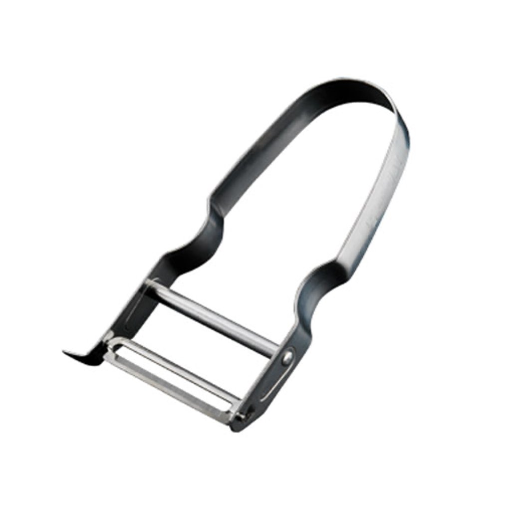 Dvě postranní vyklenuté rukojeti umožňují se škrabkou pohodlně manipulovat levákům i pravákům. Malý vyčnívající kousek kovu, který se nachází pří hlavě, se používá k odstranění kazů a výčnělků na bramborách nebo jiné surovině. Vyměnitelná čepel škrabky je vyrobena z leštěné uhlíkové oceli a je zárukou dlouhé životnosti.