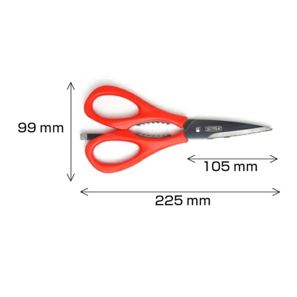 Rozložitelné kuchyňské nůžky s 5 funkcemi, s celkovou délkou 225 mm mají v kuchyni všestranné využití. Nůžky mají příjemná měkká červená držadla z termoplastického kaučuku s dostatečně velkými otvory na pevný úchop a ostří je titanové s dlouhou životností.