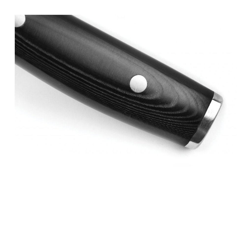 Malý japonský kuchařský nůž YAXELL RAN PLUS SANTOKU s délkou čepele 125 mm je oblíbený zejména u žen. Je to zmenšená kopie nejoblíbenějšího nože Santoku a poslouží vám v domácnosti na krájení úplně všeho. Nůž je vyroben ze 69 vrstev damascénské oceli a rozhodně patří mezi ty nejkvalitnější kuchařské nože s jakými jsem kdy mohla krájet. Jejich kvalitní zpracování a ostrost je nepřekonatelná.