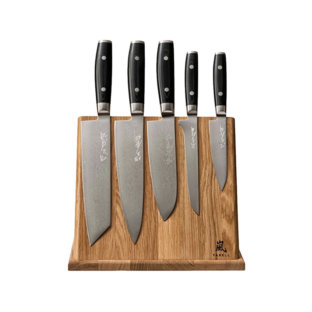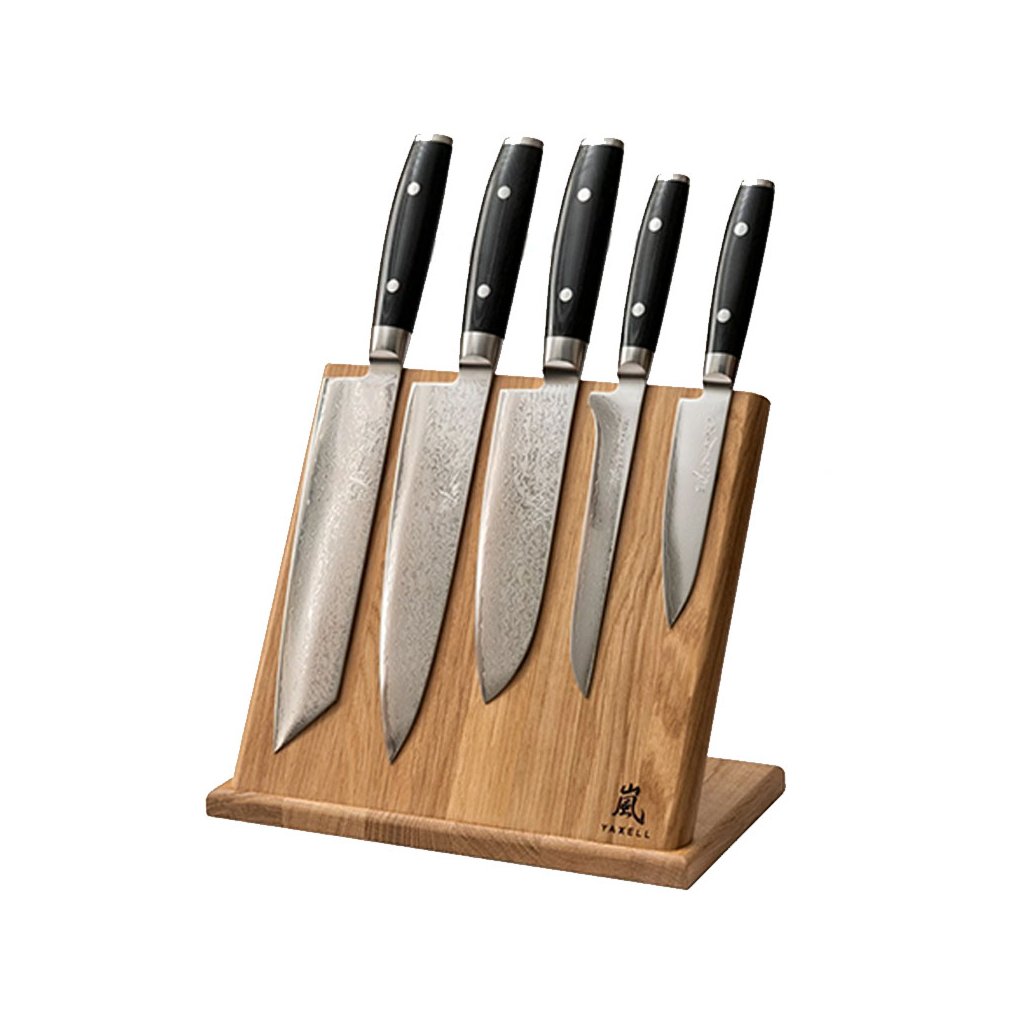 Elegantní magnetický stojan Yaxell na 5 kuchyňských nožů je vyroben z masivního dřeva. Jeho plocha pojme až 5 kuchyňských nožů, které budou díky magnetu pevně držet na svém místě, nepoškodí se ani nepoškrábou.