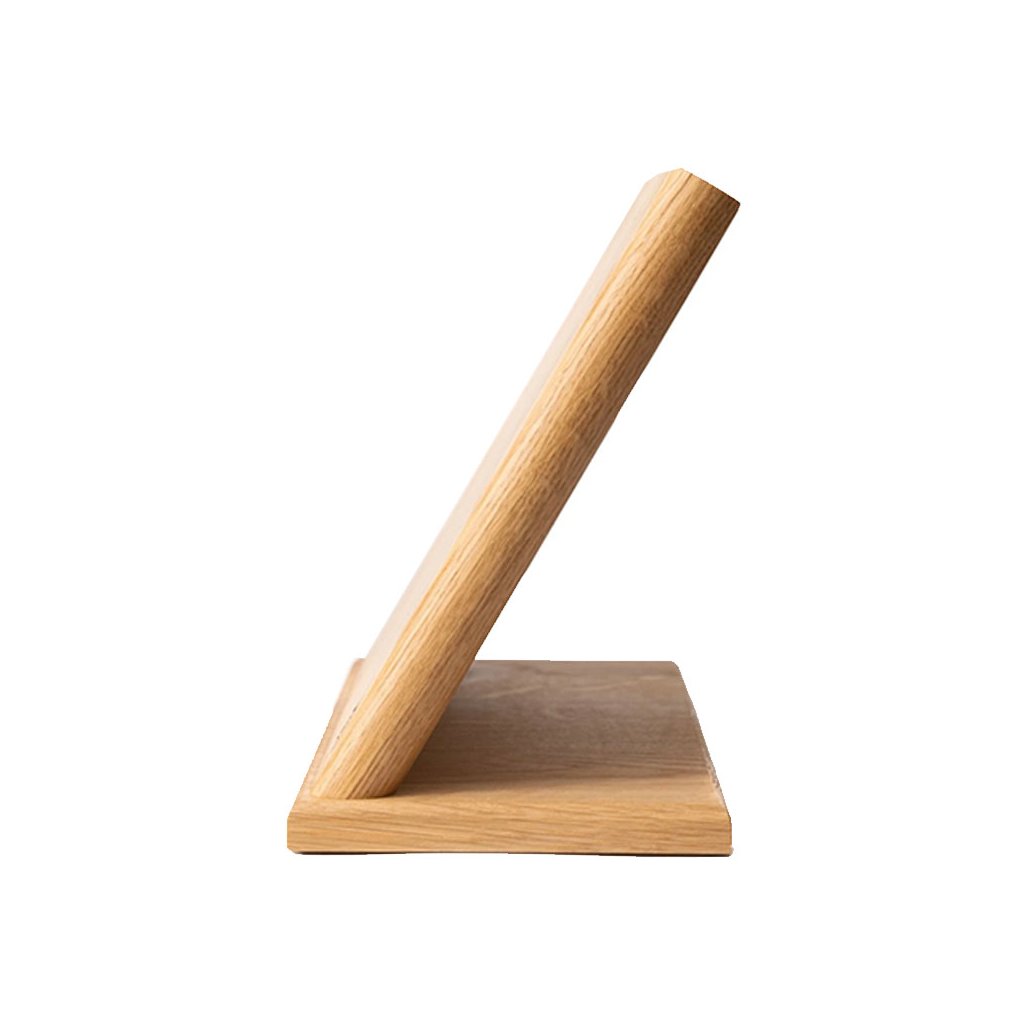 Stojan je vyroben z masivního dřeva výběrové kvality (na výběr je dub nebo buk) a obsahuje silný magnet, který spolehlivě udrží menší i větší nože přesně na svém místě. Blok působí elegantně, umožňuje pohodlný přístup k nožům a zajišťuje jejich hygienické skladování v suchém a čistém prostředí. Díky tomu, že máte všechny nože na očích, snadno rozlišíte ten správný už na první pohled. Dřevo navíc nože netupí a nijak je neodírá, což ze stojanu dělá ideální řešení pro jejich každodenní uložení.