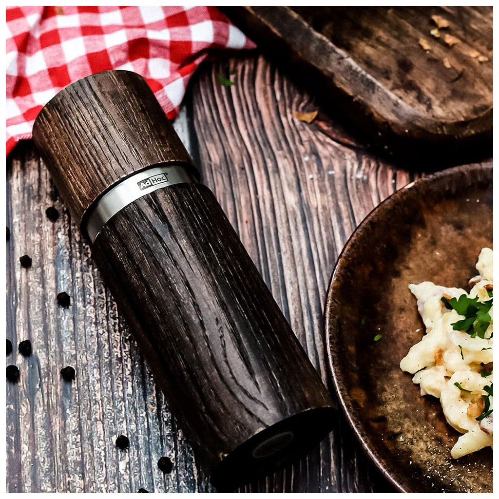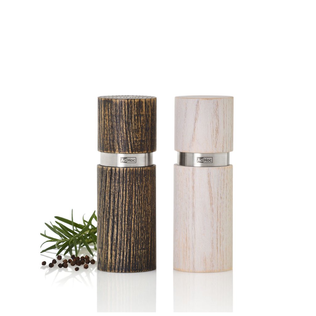 Sada dvou kvalitních dřevěných mlýnků Textura Antique od německé značky AdHoc je ideální pro mletí pepře, hrubozrnné soli a dalších druhů koření, jako je nové koření nebo kmín. Každý mlýnek můžete použít na jiný druh koření (například na pepř a sůl nebo různé druhy pepře).