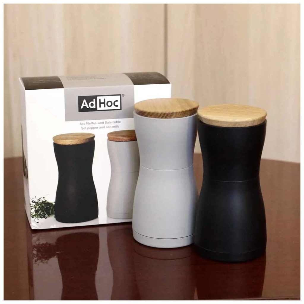 Sadu dvou ručních kvalitních mlýnků Twin od německé značky AdHoc využijete na namletí pepře a hrubozrnné soli, ale i jiného koření jako třeba nového koření, kmínu. Každý mlýnek tak můžete použít na něco jiného (pepř & sůl).