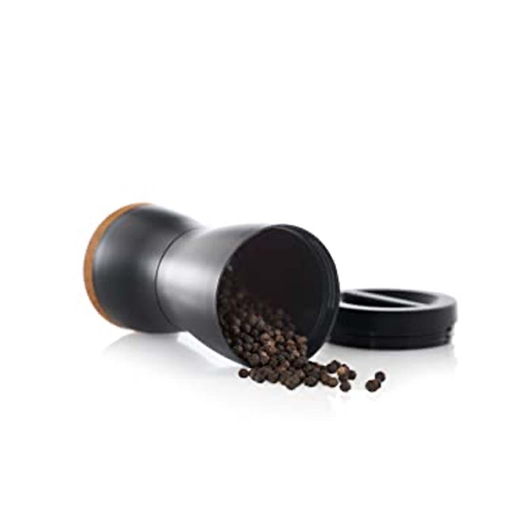 Sada dvou ručních mlýnků na koření TWIN s nadčasovým designem v černé a bílé barvě od německé značky AdHoc vám během pár vteřin dokonale namele koření a dochutí vaše jídlo. Mlýnky využijete každý na jiný druh koření nebo na pepř a sůl. Tělo mlýnku je z kvalitního plastu a víčko z dubového dřeva. Uvnitř mlýnku je patentovaný keramický mlecí mechanismus CeraCut®, na který se vztahuje záruka 30 let.