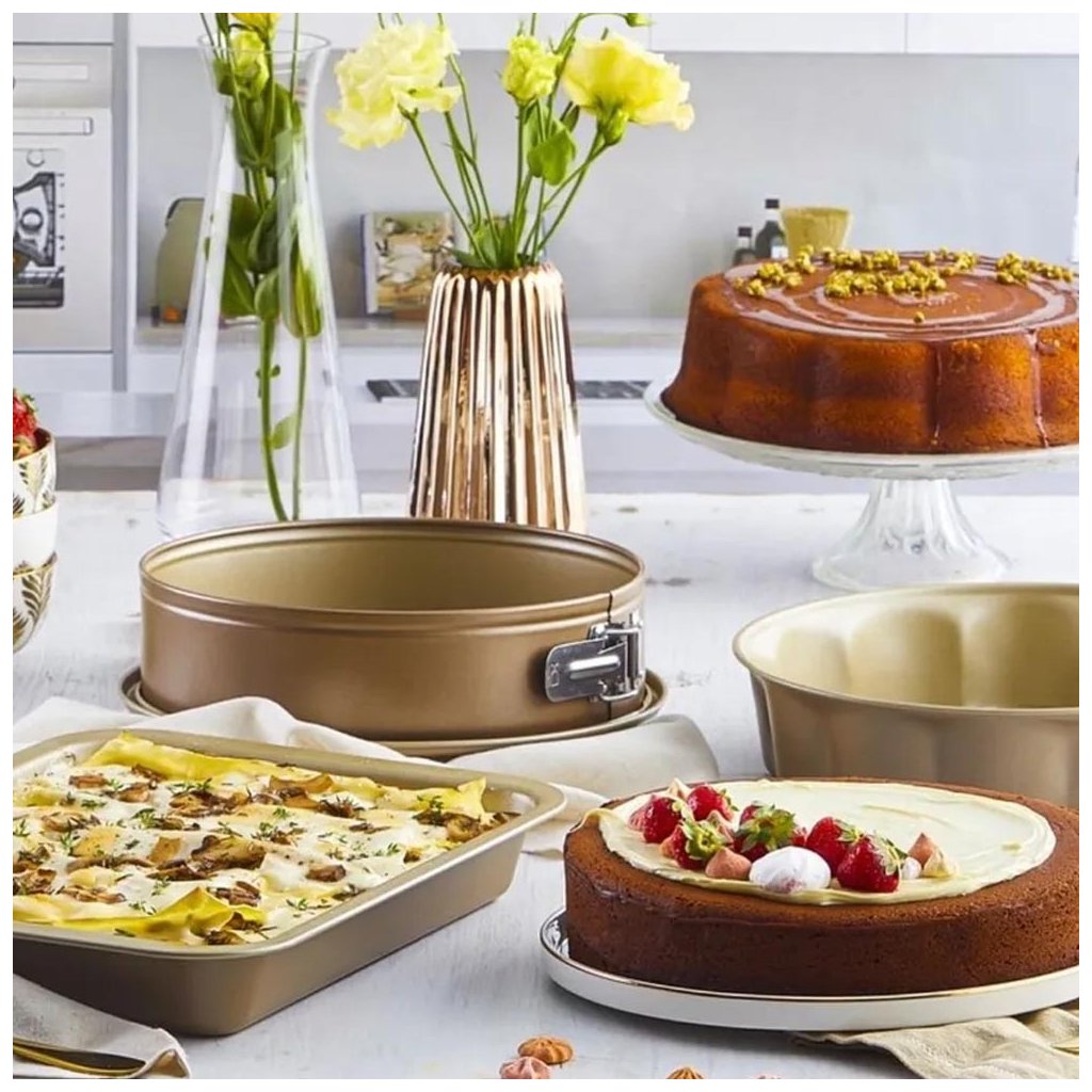 - součástí řady GOLD ELEGANCE, která zahrnuje pečící plechy, formy na bábovky, koláče, muffiny apod.