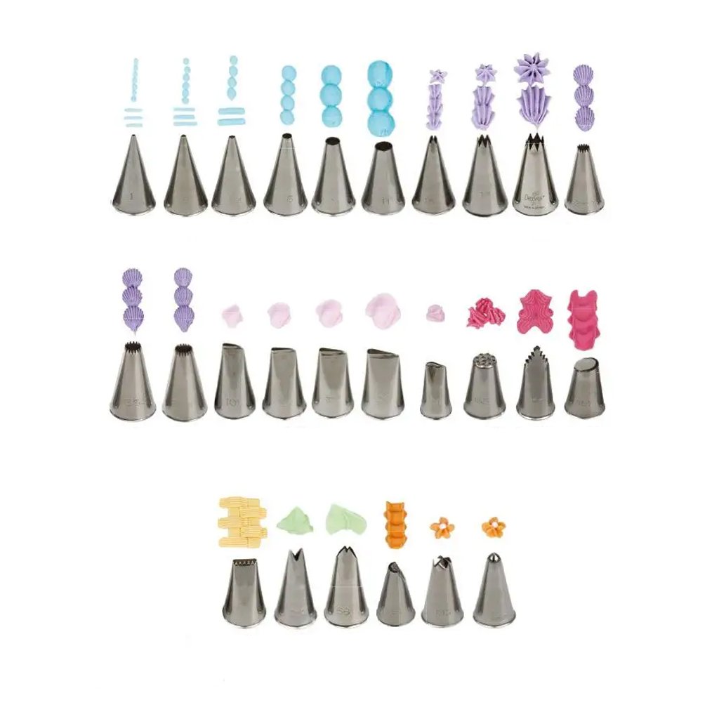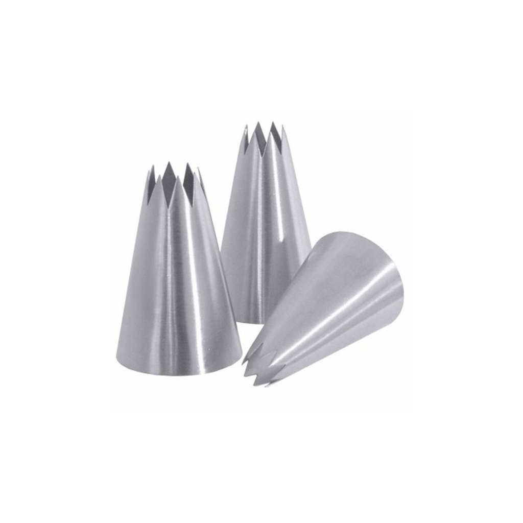 Sada dekoračních nerezových špiček s hvězdicovým otvorem s průměrem od 2 mm až po 9 mm. Špičky jsou určeny na zdobení cukrářských výrobků krémem.