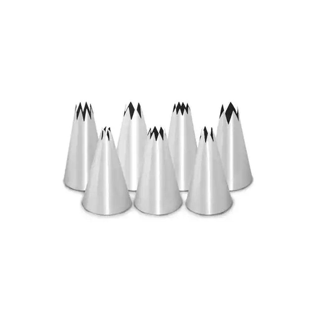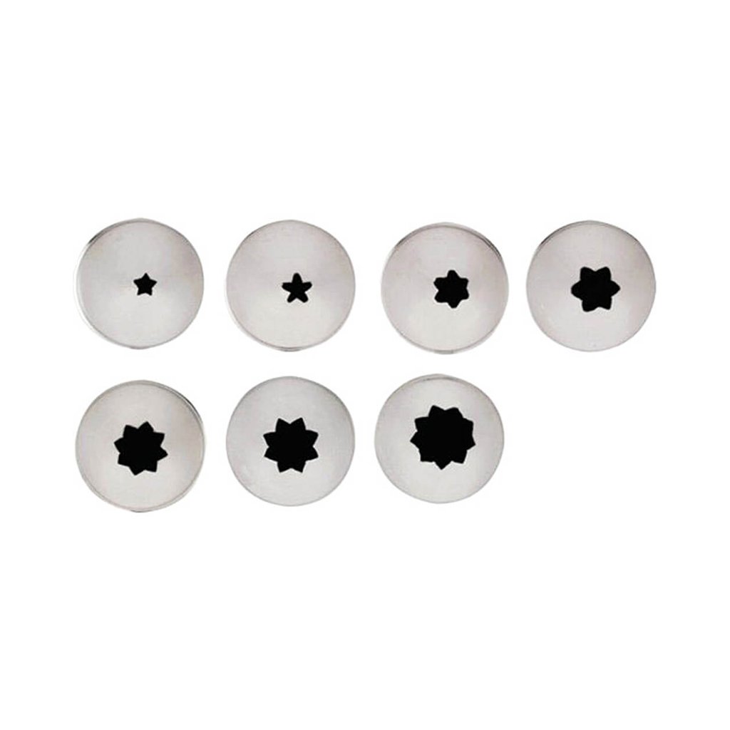 Sada 7 kusů nerezových cukrářských špiček s otvorem ve tvaru hvězdy najde využití u každého amatérského nebo profesionálního cukráře.