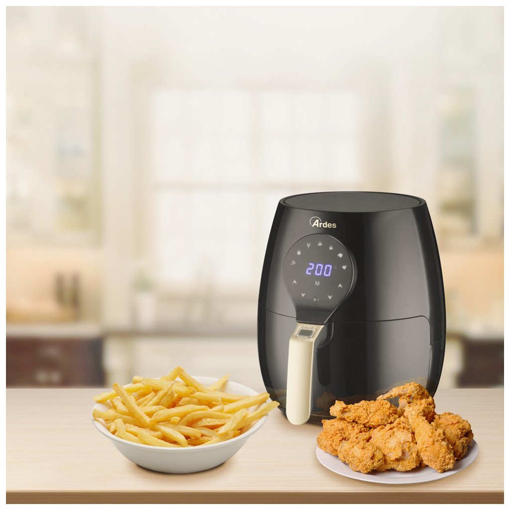 Horkovzdušná fritéza K33 od značky Ardes využívá ke smažení horký vzduch a spotřebuje až o 80 % méně tuku než tradiční fritéza - v případě se do ní dá pár lžíček tuku. Objem koše fritézy je 5 l. Teplotu fritézy Ardes K33 lze velice snadno nastavít pomocí termostatu v rozmezí od 80 °C po nejvyšších 200 °C.