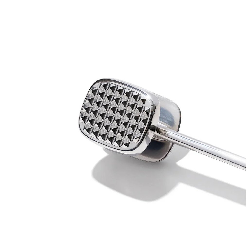 Palička na maso OXO Good Grips je vyrobená z odolného litého hliníku a disponuje dvěmi pracovními stranami, které jsou mírně nakloněné: