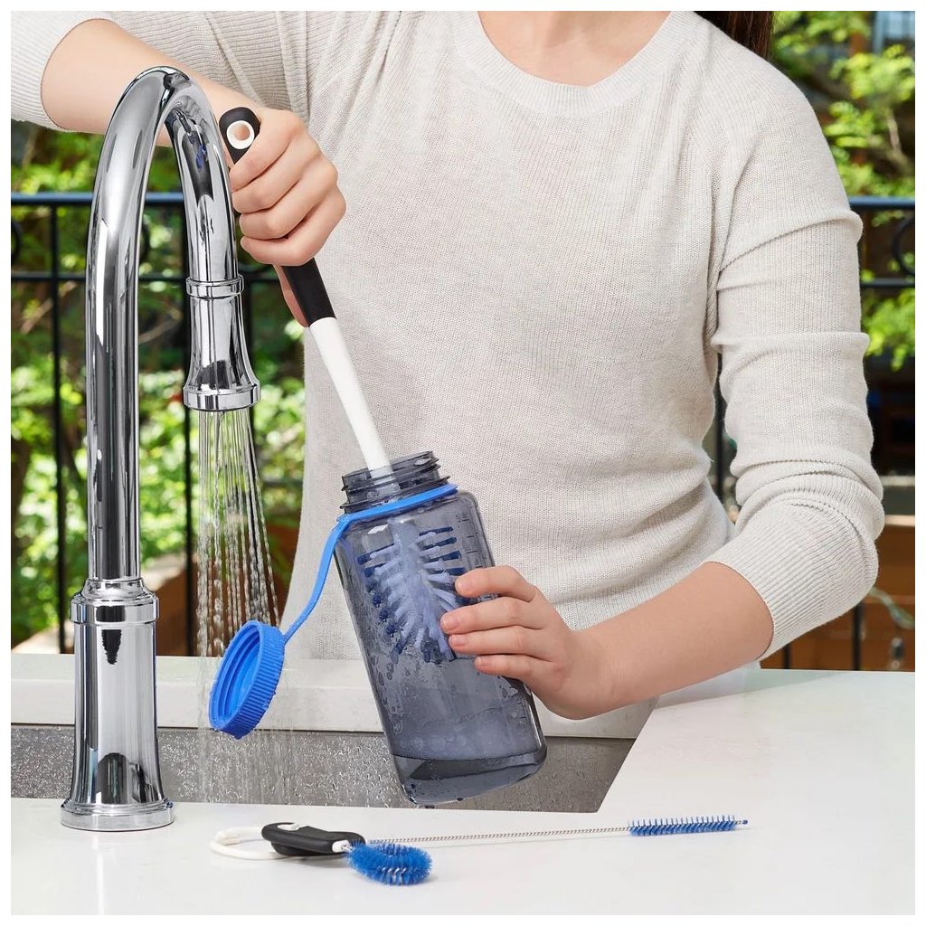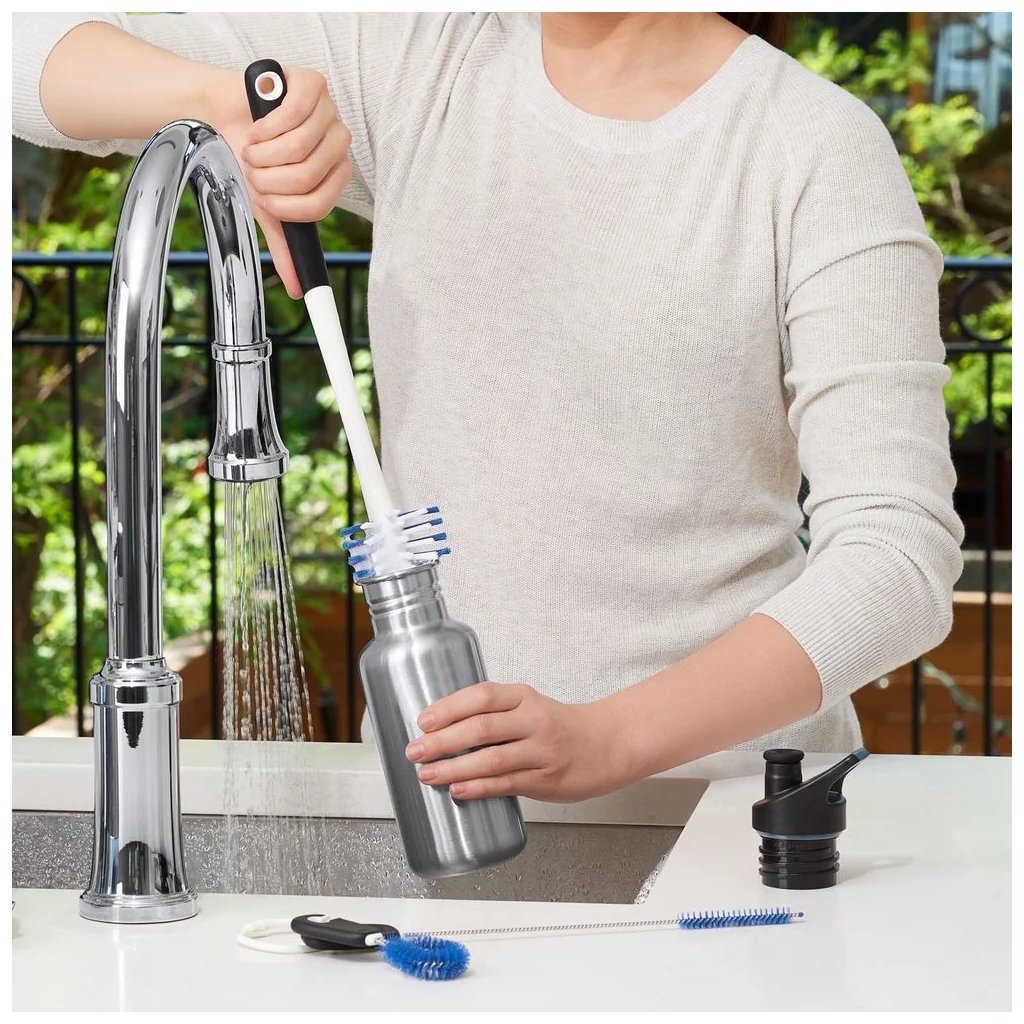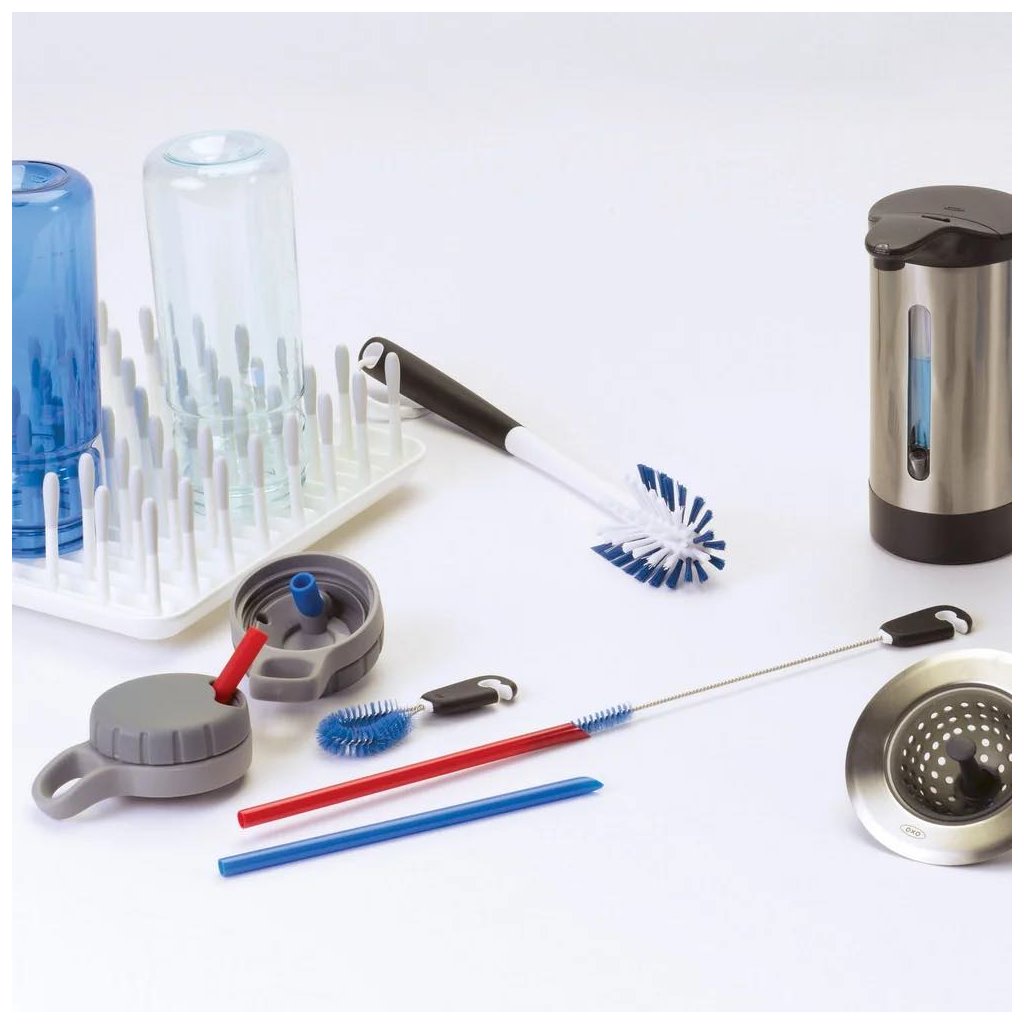 Praktická sada 3 kartáčů OXO Good Grips na mytí lahví nebo menších prostor jako jsou výlevky na dřezu, uzávěrů, těsnění, brček na pití a dalších.