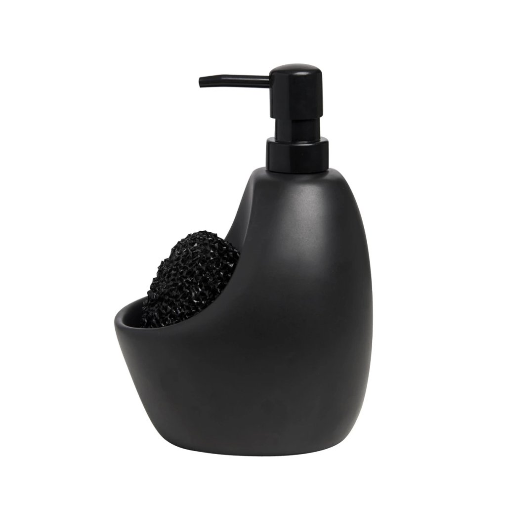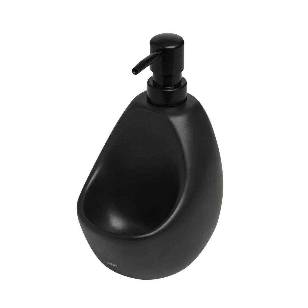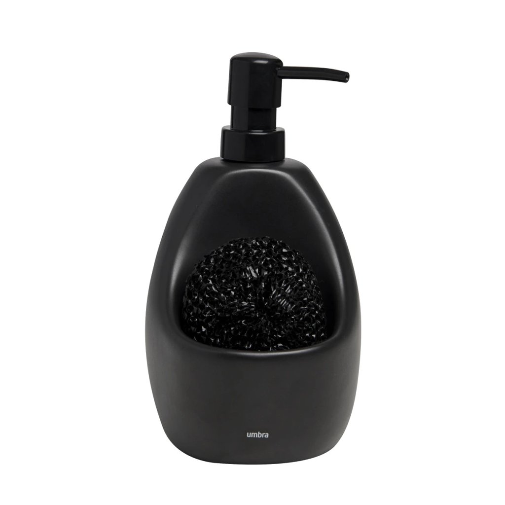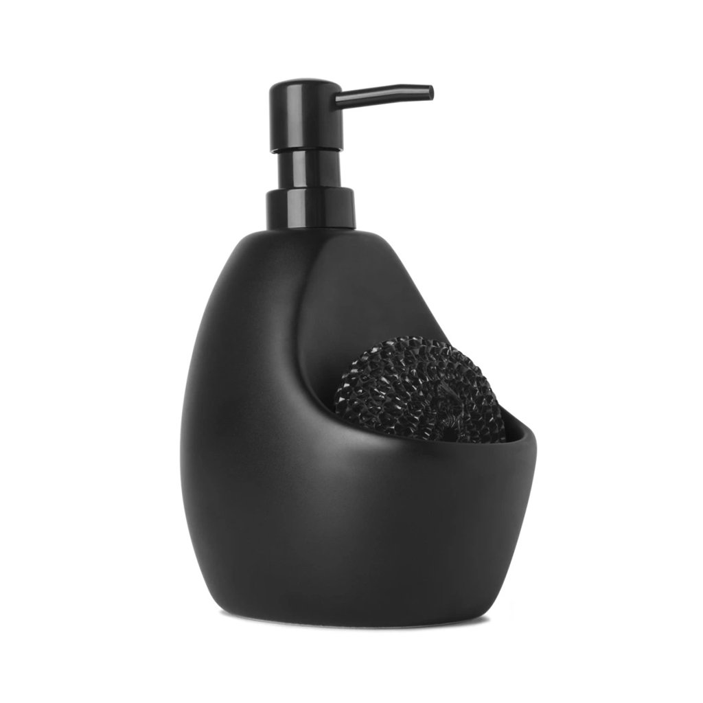 Originální, ale zároveň praktický keramický dávkovač saponátu nebo mýdla Joey od kanadské značky Umbra má integrovaný organizér na houbičku a tím udrží prostor kolem dřezu nebo umývadla čistý a přehledný. Díky těžké keramické základně umožňuje pohodlné ovládání jednou rukou, aniž by se převracel či posouval.