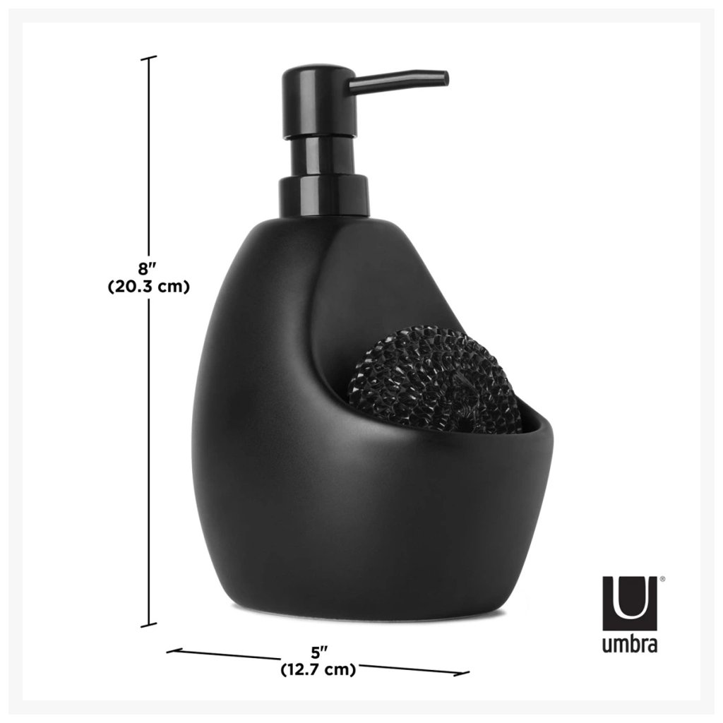 Keramický dávkovač mýdla nebo saponátu se zabudovaným organizérem na houbičku Joey je od kanadské značky Umbra. Spojuje design, praktičnost a styl pro kuchyň nebo koupelnu. Má objem 590 ml a je vhodný pro každodenní používání.