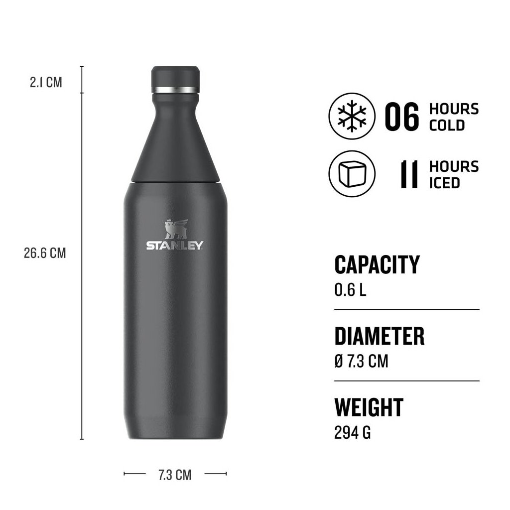 Praktická termoláhev The All Day Slim od americké značky Stanley má objem 600 ml. Je extrémně odolná a díky těsnění netekoucí. Zaujme svým minimalistickým designem a štíhlým tělem připomínajím kuželku, který se pohodlně vejde do boční kapsy batohu.